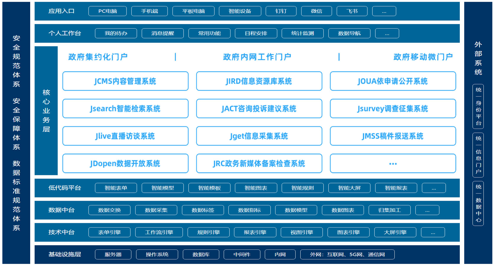 按照“大资源、大数据、大协同、大服务”的要求,提升政府服务水平,提高群众对政府服务的满意度,政务服务平台将先进信息化技术与下丿实际应用相结合,以服务企业和市民为导向,实现资源整合和数据共享。平台包含了门户网站、信息资源库、聚合搜索、网上办事大厅、服务大厅、数据开放、信息公开等子系统。系统基于苏柏亚零代码低代码技术中台,可自定义灵活扩展。
