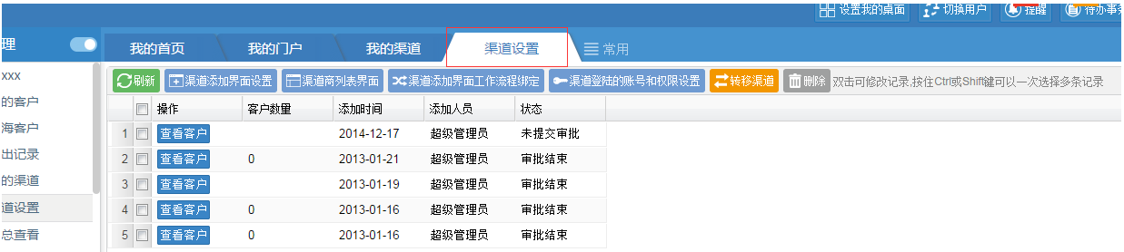 注意:渠道转移相当于客户转移,进行转移的操作。